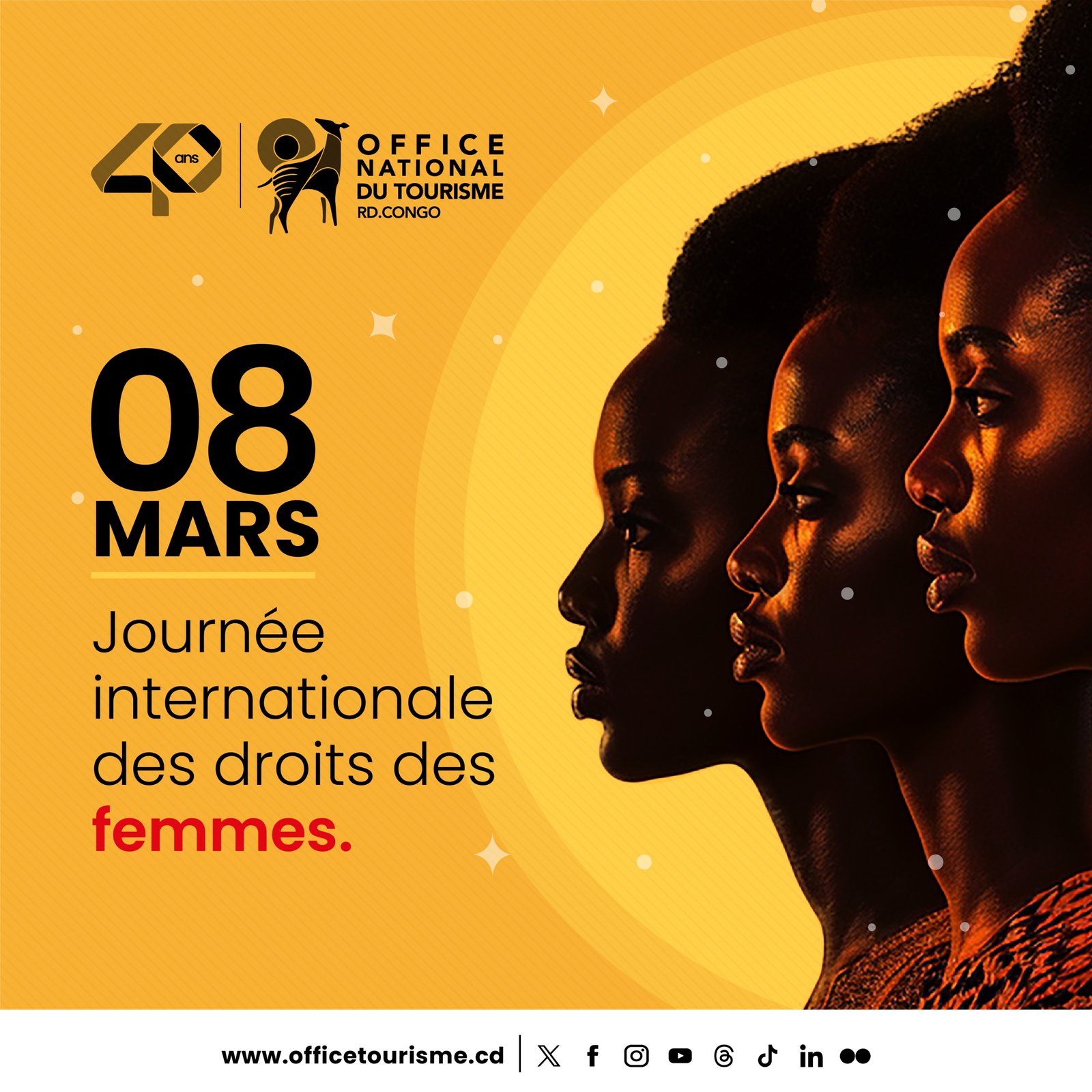 À l’occasion de la Journée internationale des droits des femmes, le 8 mars 2026, sous le thème international : « Droits. Justice. Action. Pour TOUTES les femmes et les filles », il est temps de reconnaître et d’amplifier le rôle central des femmes dans le secteur du tourisme en République démocratique du Congo : actrices de la relance économique, gardiennes des patrimoines culturels et moteurs d’emplois locaux, elles méritent que leurs droits deviennent justice concrète et que cette justice se traduise en actions durables.